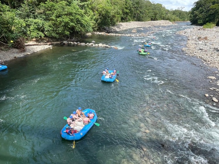 Not long after my cautionary tale, we boarded the bus and headed out for our first official activity: white-water rafting on the Sarapiquí River. Most of the group had signed up, and after a quick rundown of rafting do’s and don’ts, we were on the water. The stretch we tackled featured Class III rapids, made even more intense by heavy rainfall over the previous few days. Our rafts were tossed around at nearly every bend, but thanks to solid teamwork, my raft managed to stay upright the entire time. I cannot say the same for some of the other rafts in our group.