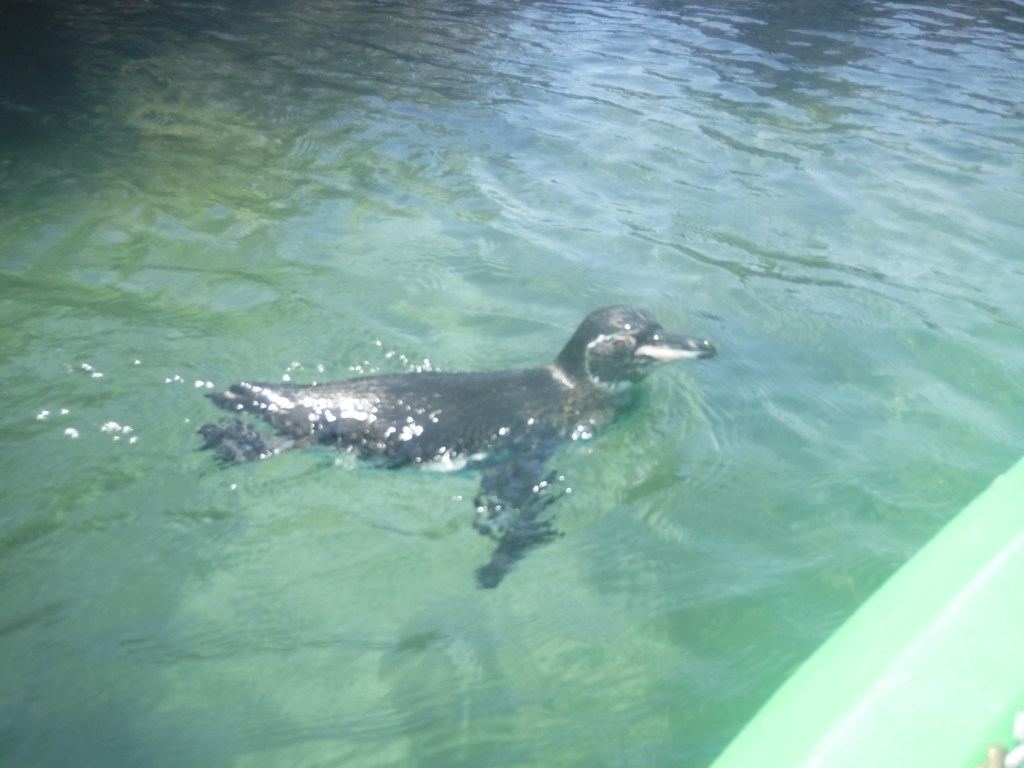I was in the group with Melissa, Sarah S, Cristiana, Gina, Alicia, Sara A, Elliot, Molly, and Kevin who went snorkeling first. We walked along a wooden bridge out to the end of a pier passing many sea lions lounging along the way. At the end, we were given a 5min crash course on how to snorkel and the do’s and don’t’s of swimming through the area! I brought my own pair of prescription goggles I bought before the trip so I could see the sights, the animals, and where I was swimming. We put on flippers, goggles, and snorkels and hopped into the water to immerse ourselves in the subaquatic world of the Galapagos!