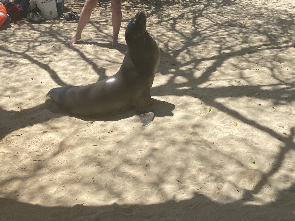 From the hotel, we walked over to spend some time at the beach. There were sea lions and iguanas littered across the entire beach just lounging about. The iguanas stayed sprawled out and didn’t move much, but some of the sea lions seemed to enjoy showing off! Our Galapagos guide, Cristian, split us into 2 groups. One group went snorkeling while the other group went kayaking and then we swapped activities a little later.